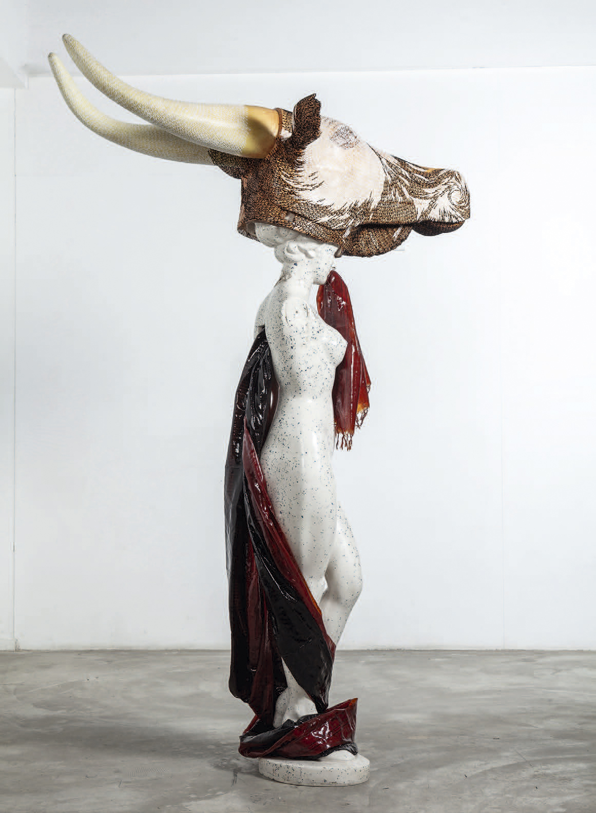 Bharti Kher. Animus Mundi, 2018. Sari, resin, and metal. 81½ x 36 x 57 inches.