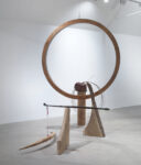 The repetition of labor is, for Kher, a ceaseless search and a spiritual discipline. Her 2023 exhibition at the Arnolfini Centre for Contemporary Arts in Bristol, The Body Is a Place, was anchored by a mesmerizing centerpiece in the upper gallery: Consummate Joy and Sisyphean Task. The work embodies a delicate poise that could only come out of contradiction and fragility, achieved through the contrapuntal placement of contrasting textures and movements: arc against pendulum, suspension against gravitation, wood against stone, coarse against smooth, copper against steel. Its shapes are choreographed into a tense if dreamy ecology: circle, rectangle, cylinder, triangle. In Greek mythology, Sisyphus is condemned to roll a boulder up a hill only for it to roll down as soon as it nears the top. Kher rewrites the myth through the lens of Eastern spirituality. Her rock is a rich, red jasper, a precious and protective stone that refigures repetition as meditative ritual rather than punishment, and failure as the instrument of spiritual vigilance. But Camus would have understood it too: he concluded his famous essay on the myth by suggesting that “the struggle itself toward the heights is enough to fill a man’s heart. One must imagine Sisyphus happy.”