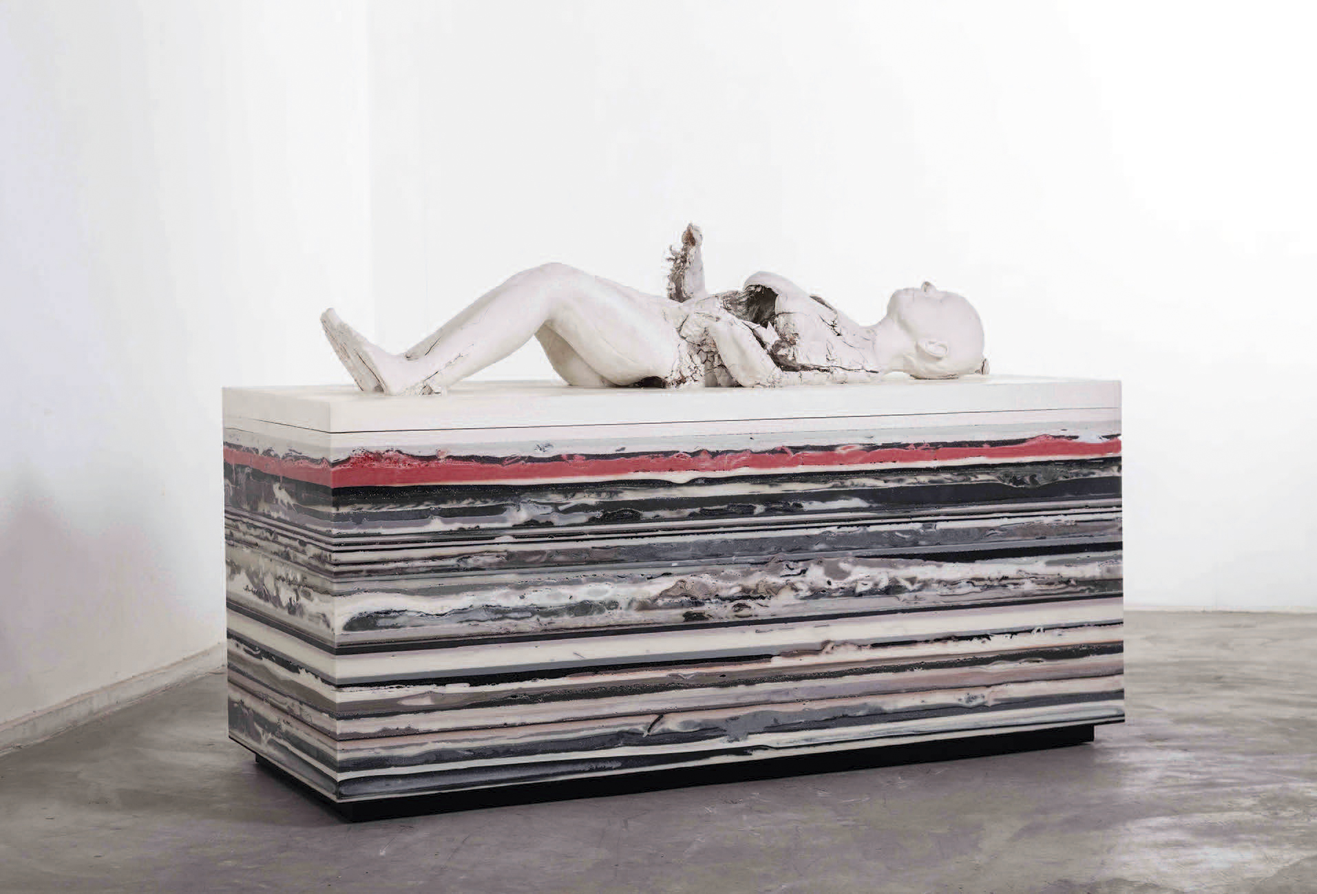 Bharti Kher. Pieta, 2018. Plaster and wax. 68¾ x 30 x 30 inches.