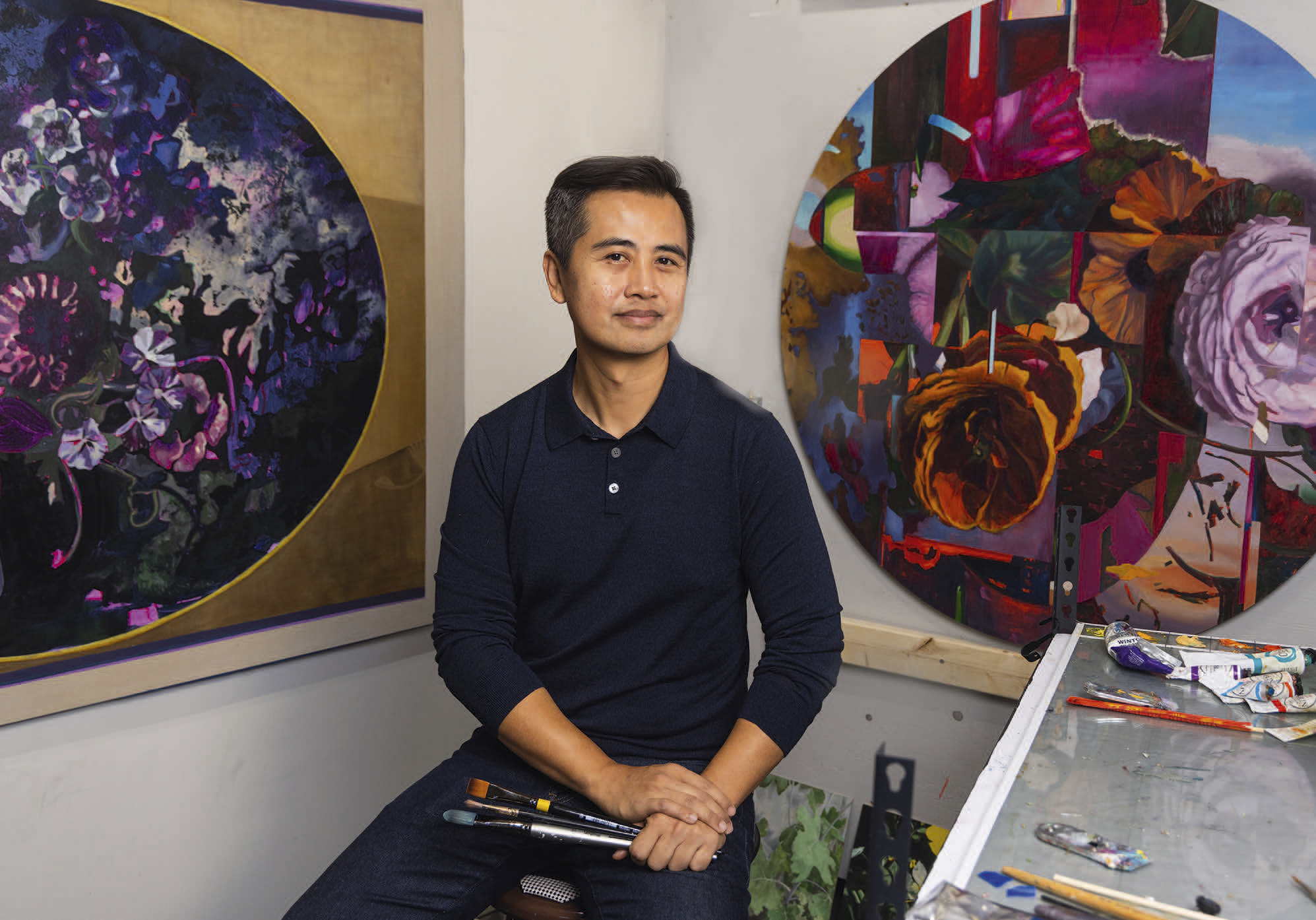 Image: What drew you to horticultural imagery? And what is the significance of working on tondo canvases?