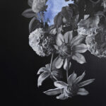 TV: My flower paintings depict the precarious balance between creation and destruction: flowers in full bloom caught in fragmented and broken arrangements. With the tracery of fracture so present, can we still see value and beauty in them? And can we accept this in ourselves when we confront our own limitations or traumas?