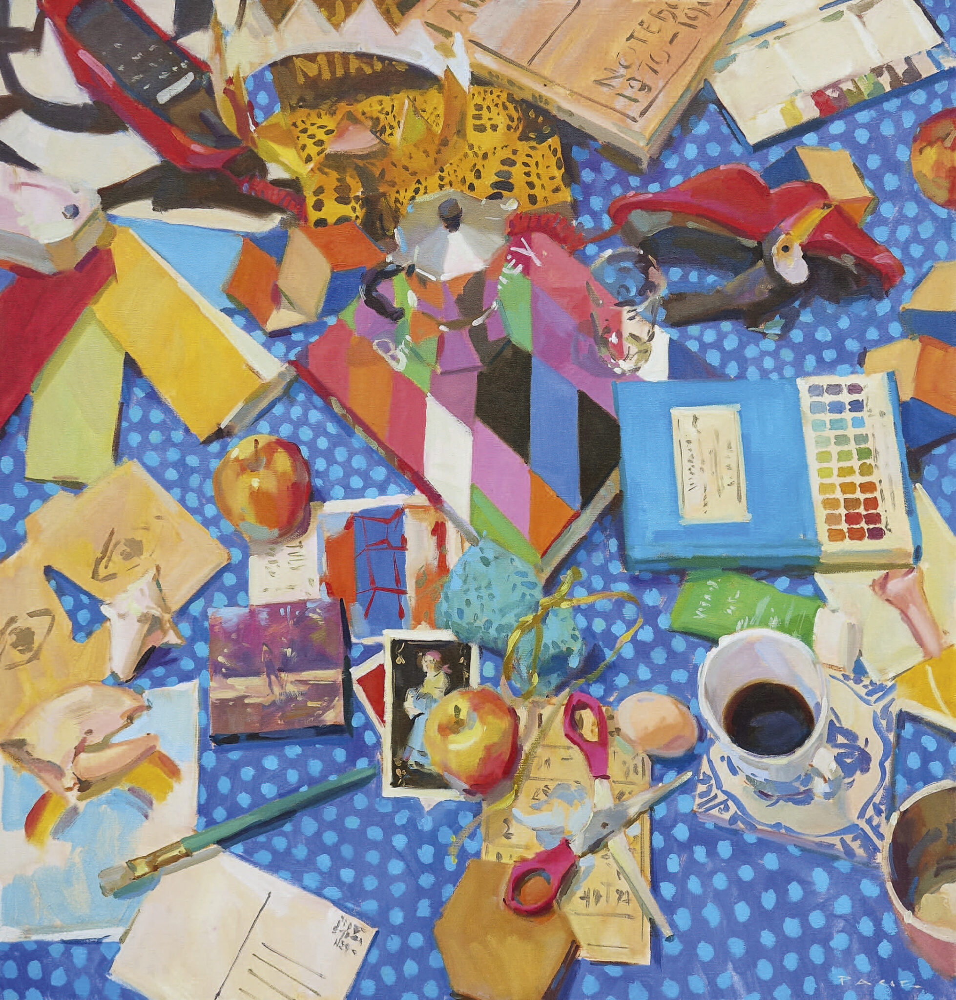 Image: Beyond references to professional artists, your still lifes often contain evidence of kids doing the making, from construction paper to scissors. Do these elements hint at how you perceive the creative act?