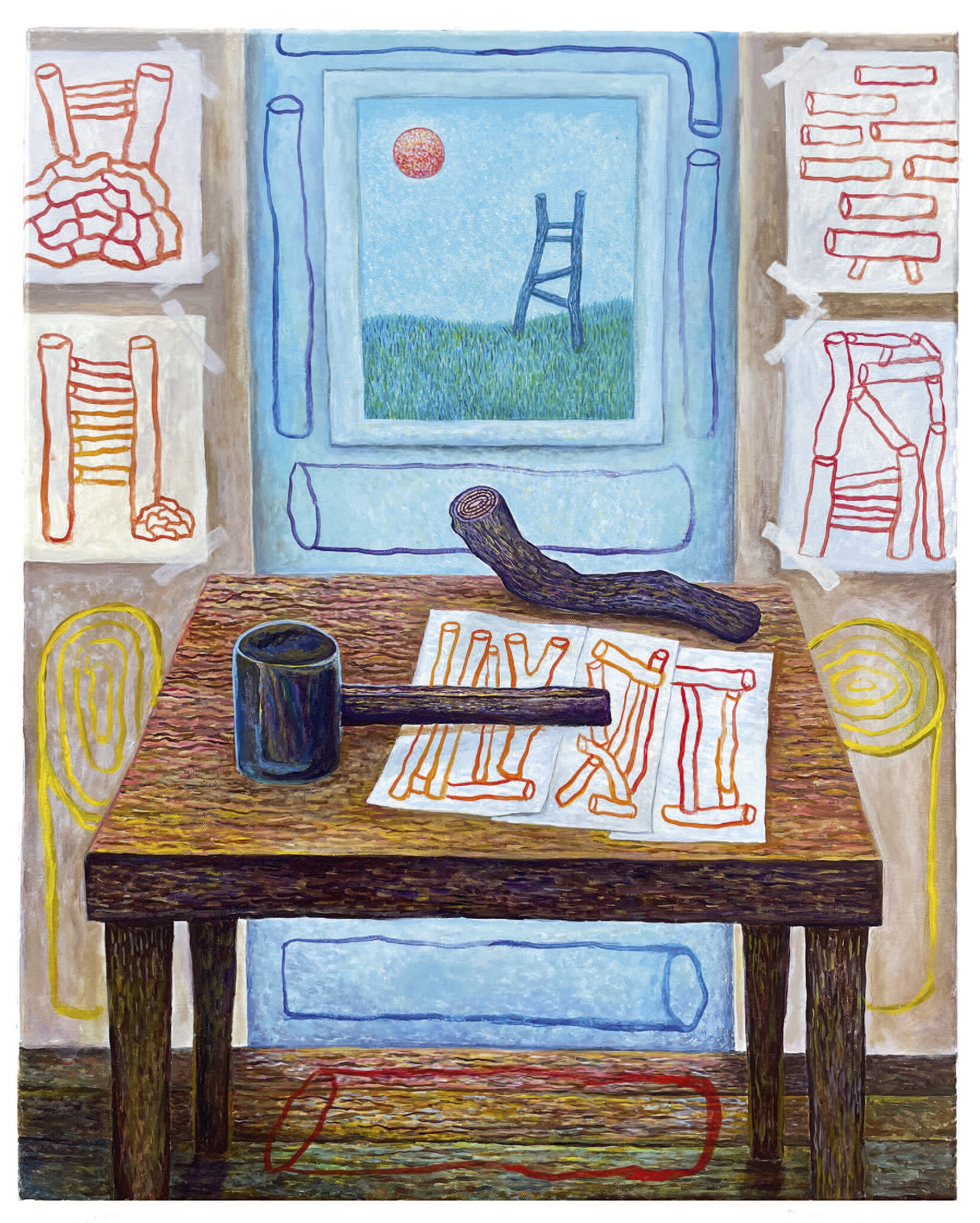 Becky Moon. Building a Ladder That Cannot Be Climbed Twice, 2024. Acrylic on canvas. 24 x 20 inches.