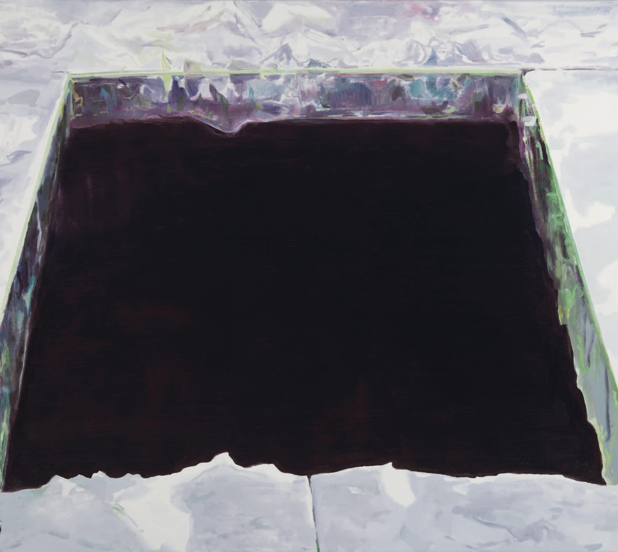 I’m not sure whether my hole in the ice is an entrance to oblivion, as some have suggested, noting its tomb-like qualities. Mostly I like that it oscillates between the material of the paint, the representation of a hole in the ice, and a simple shape. It’s an unexpected way to think about and observe the world, one that, in painting as in reality, defers ultimately to a mysterious and inescapable vanishing point.