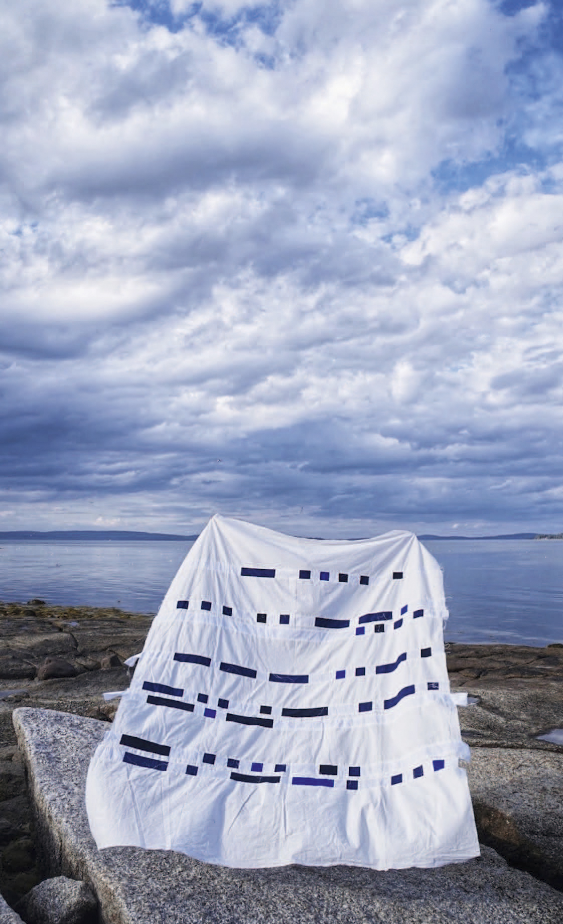 The Sigh of Dark Things, 2020. Morse code quilt. 91 x 82 inches. Photos: Juliette Sutherland.