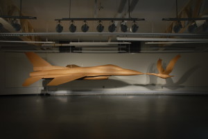 Castleman’s earlier work Starcross’d Lovers (2009) is, in an odd way, a more traditional sculptural object. A fabulously crafted, one-third-life-size F-14 fighter jet constructed out of corrugated cardboard is suspended nose-to-nose with an equally alluring three-times-life-size cardboard goose [see Plate 8]. The work was inspired by the emergency landing of a jetliner in the Hudson River in January of 2009 caused by a flock of geese. The confrontation of nature and machine is frozen in an aesthetically charged moment of attraction. The pair are reminiscent of Adam and God on the ceiling of the Sistine Chapel, but instead of the transmission of life and creative energy, this poignant moment points to imminent destruction, a tragic attraction. Still, despite its energy and audacity, the piece is less powerful than Castleman’s other large works. The objects gaze at each other, frozen in a self-referential reflecting pool while the viewer, though awed by the spectacle, remains outside.