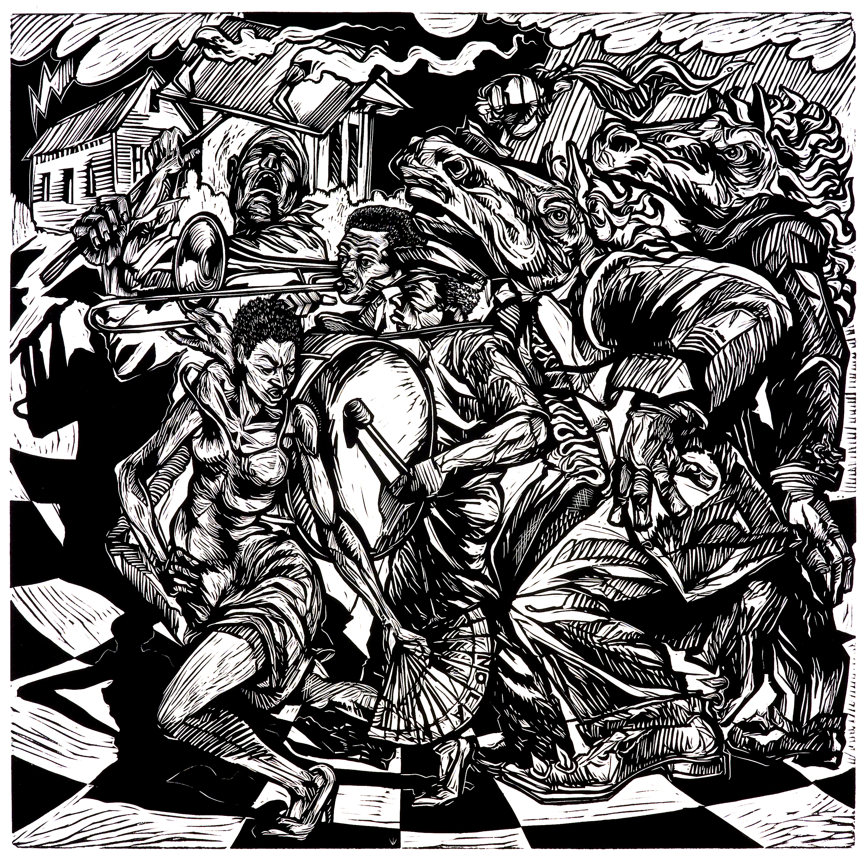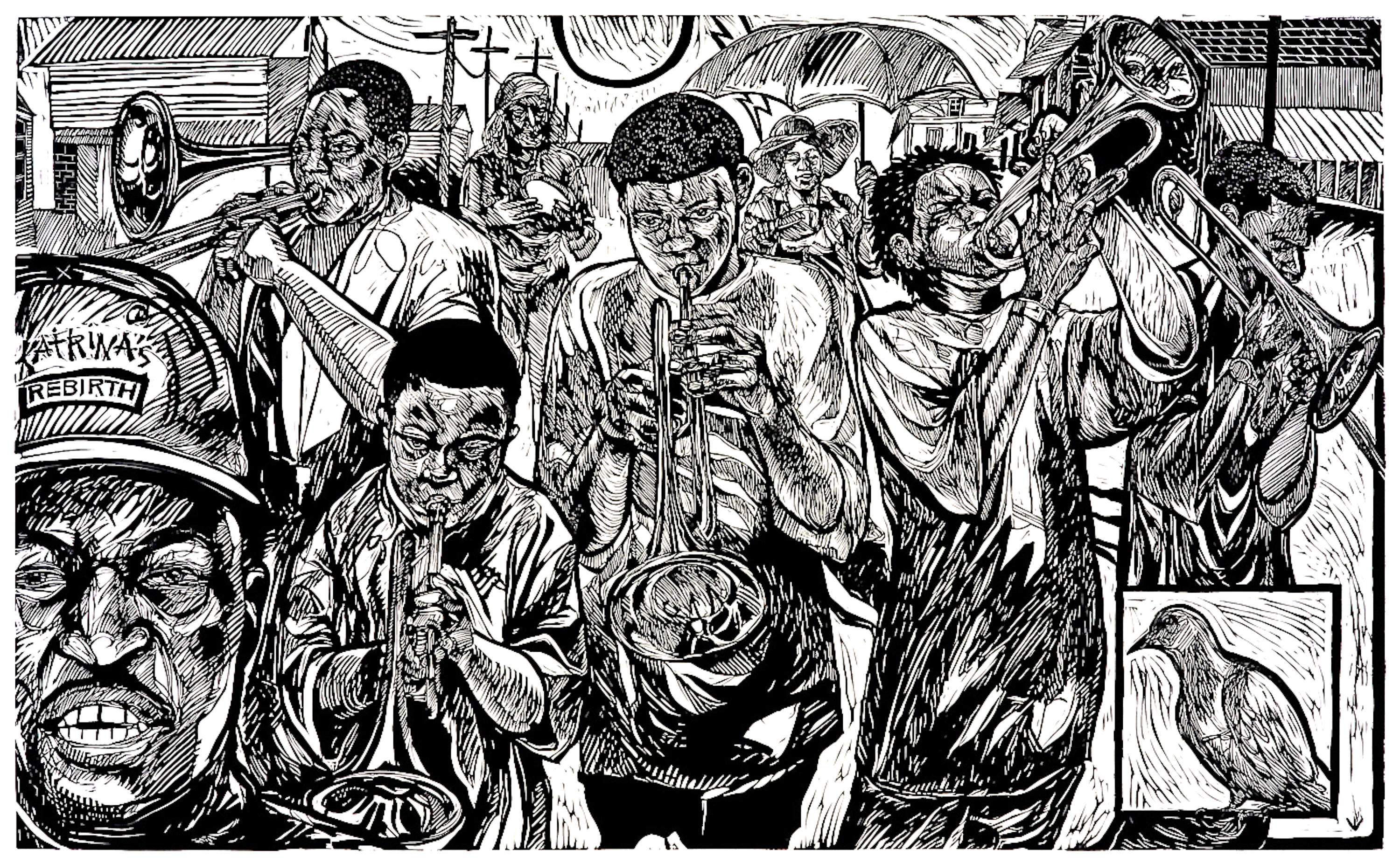 In addition to being an accomplished lecturer and preacher in both secular and sacred settings, Prince has conducted workshops internationally. He has spoken at various colleges, community centers, museums, galleries, and addressed congregations of various denominations. Steve works primarily in printmaking and drawing. He uses its black and white language to express a remarkably original and innovative vision. The many rhythms of New Orleans’ cross-fertilized culture reflect throughout Steve’s art. The rich traditions of art, music, and religion pulsate through Steve’s woodcuts and drawings. They rise up as metaphors and messages that guide the viewer into the depths of his expressive imagination. Steve’s art becomes a window that leads you into new and unseen worlds. His work has been characterized by the New Orleans art critic D. Eric Bookhardt as “startling in its ability to elucidate inexplicable worlds within worlds, in what amounts to an almost unearthly scrimshaw effect.”